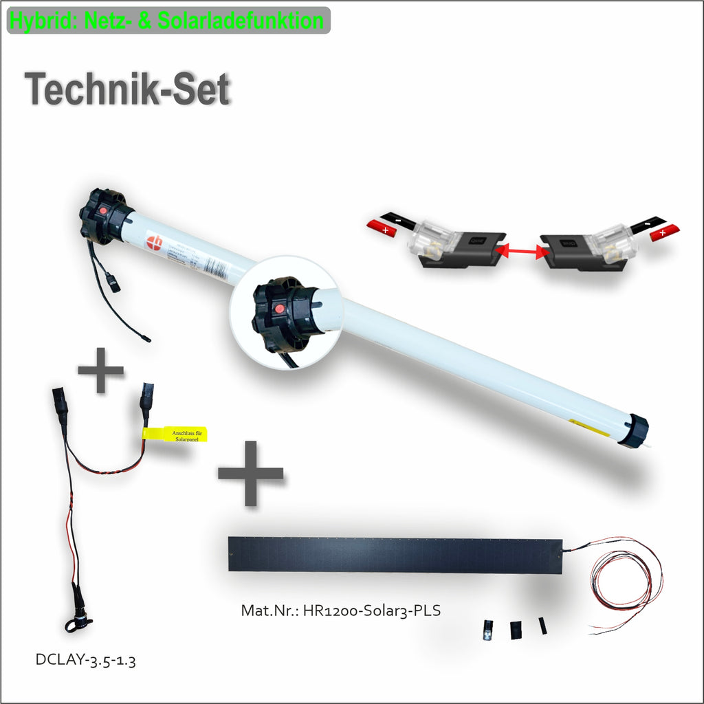 HRSDC-SET: Solar-Antriebsset für Rollladensysteme und Vertikalmarkisen 13 Nm / 20 Nm – Soft-Stop, Komplettset mit Solarpanel & Netzladebuchse, App & Smart-Home