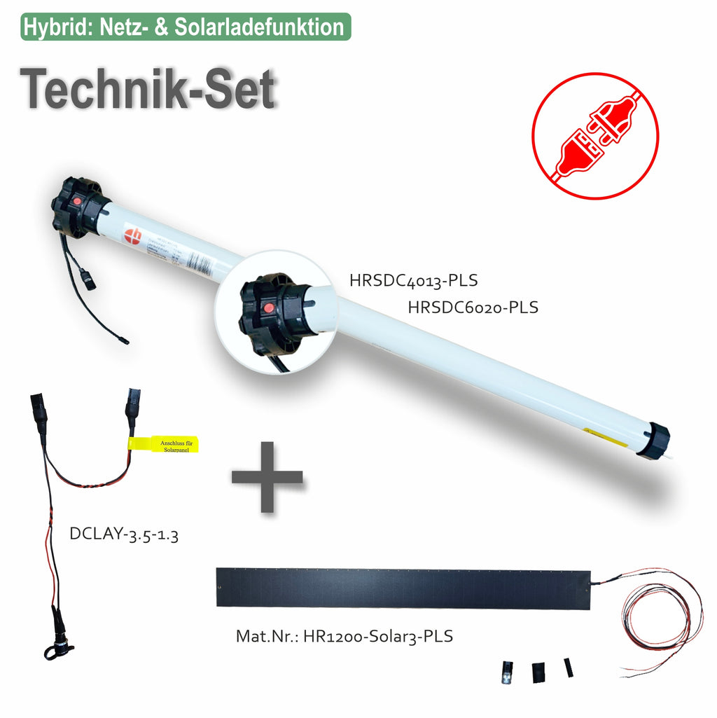 HRSDC-SET: Solar-Antriebsset für Rollladensysteme und Vertikalmarkisen 13 Nm / 20 Nm – Soft-Stop, Komplettset mit Solarpanel & Netzladebuchse, App & Smart-Home